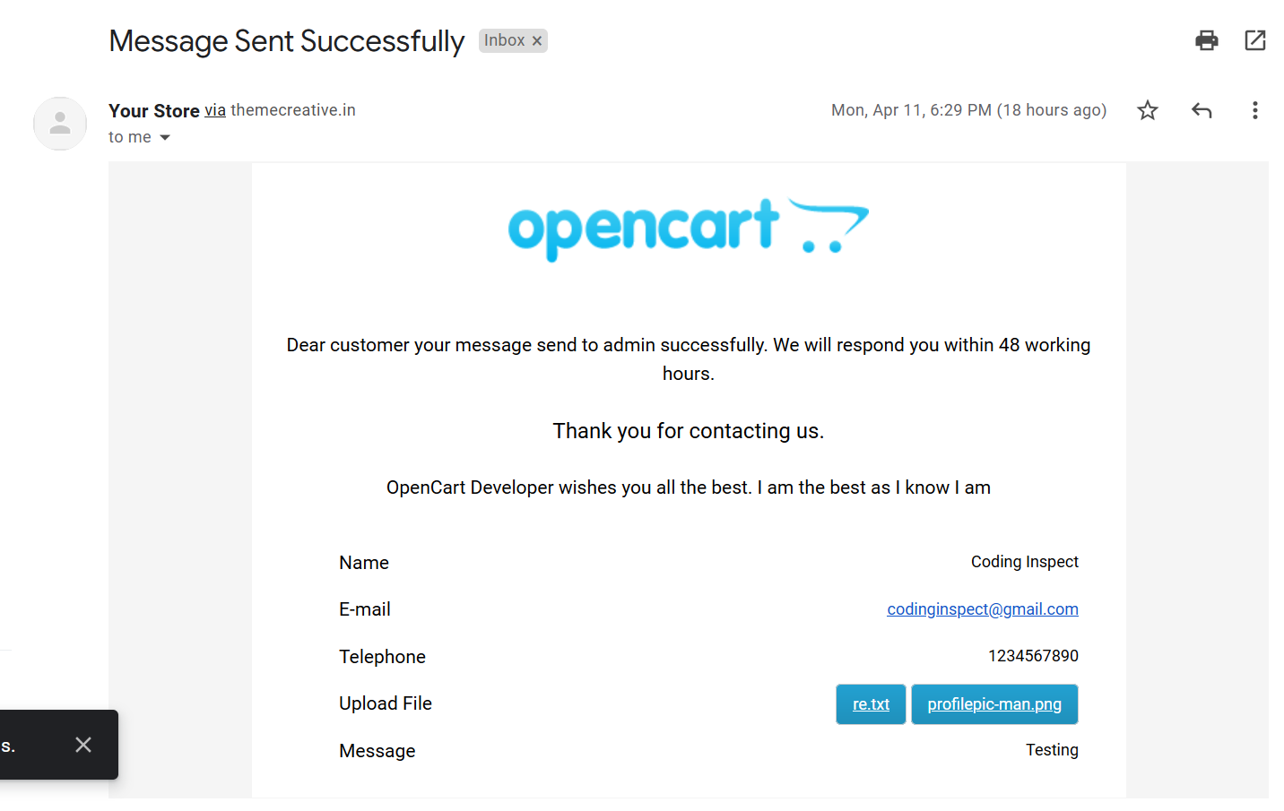 ✫ Option To send uploaded files of form in email attachment to customer and admin.
