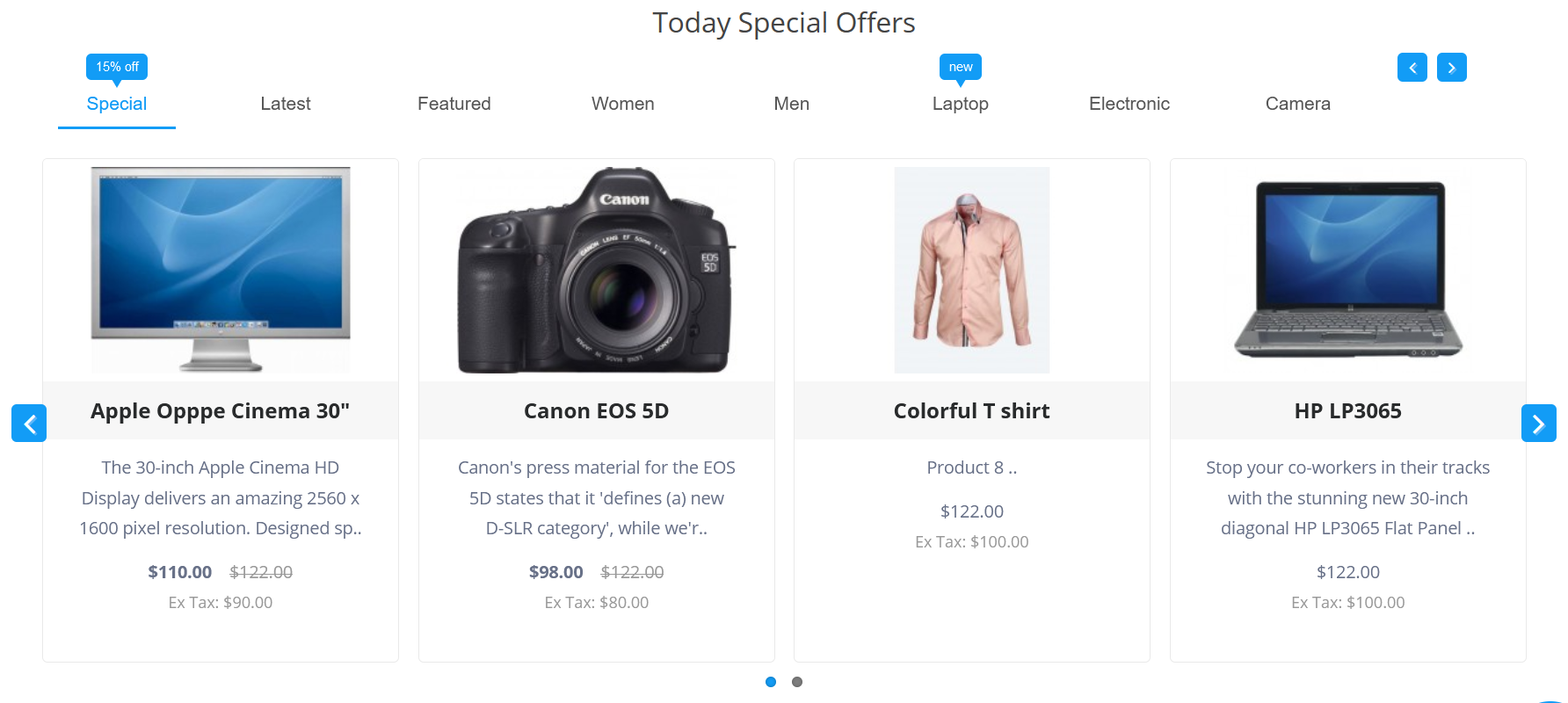 This module allows you to display multiple products using tabs. Such as Featured, Latest, Special, Category, Etc. products in tab with carousel. You can add as many as products into single tab and create as many as tabs you want for single module. You can use this module to show latest activity running on your website. For example: New Year sale, Special Winter collections, New Arrivals, Items available with No Cost EMI option, Etc. Literally you can add any kind of text call “Special Text”. As name indicates smart you make smart tabs (Infinite tabs) which use Carousel to avoid overlapping. You can show Latest, Featured, Special, Best Seller, etc all products with this module. You not need to activate any other Latest, Special module to show products and you can highlight a special text to each tab separately as well.
